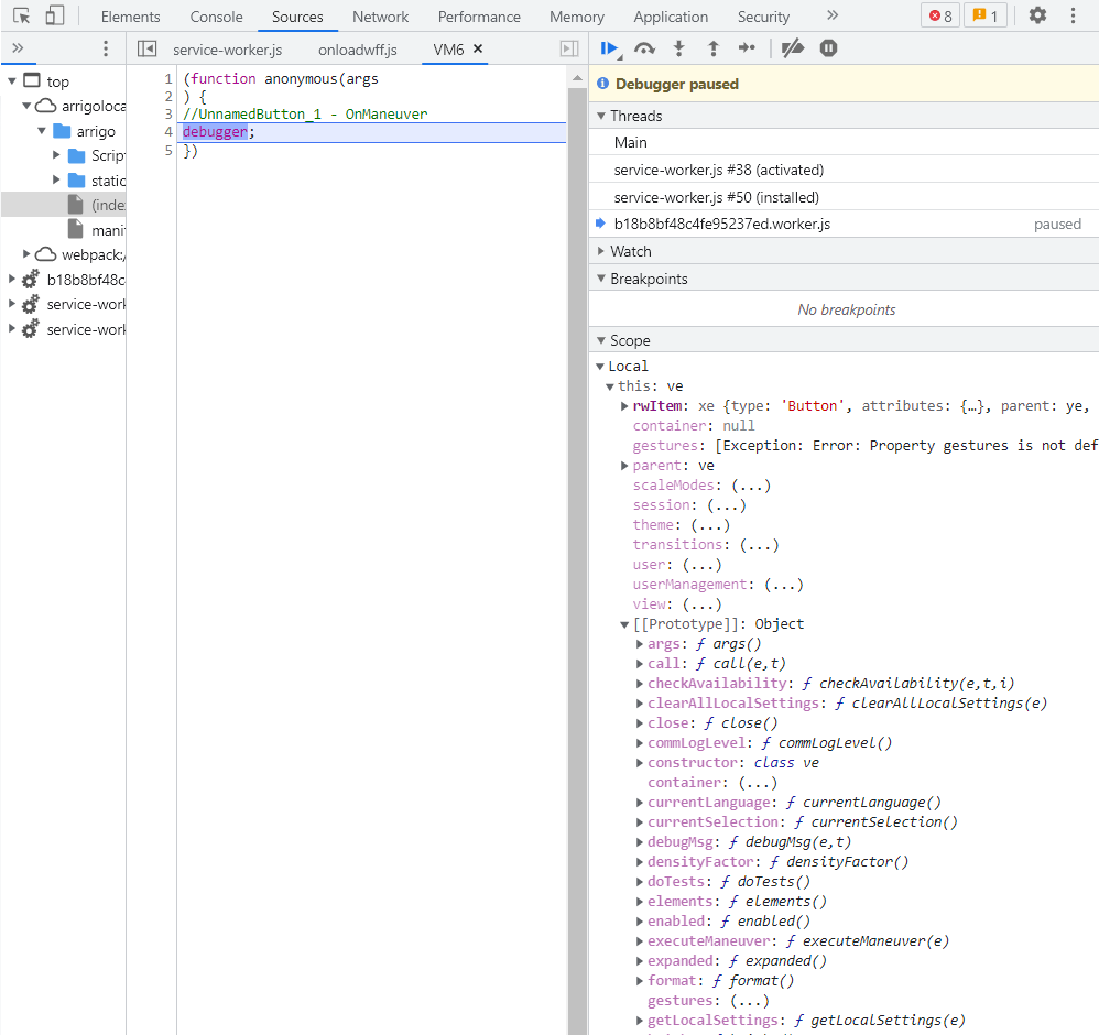 To investigate the context and arguments to the OnOpen, OnClose, OnManeuver or OnChanged event code, simply put a debugger; statement in the event code.